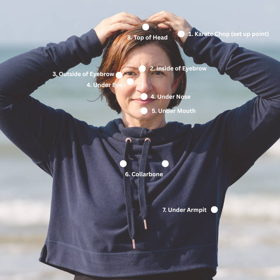 EFT tapping is done by gently tapping on specific acupressure points while repeating phrases that acknowledge how you are feeling.